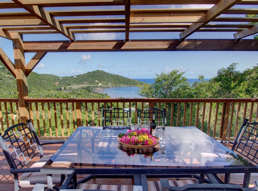 Southern Exposure offers panoramic St. John ocean views and tradewind breezes. There is a second, lower-level covered deck that offers dining and seating off the lower living room.